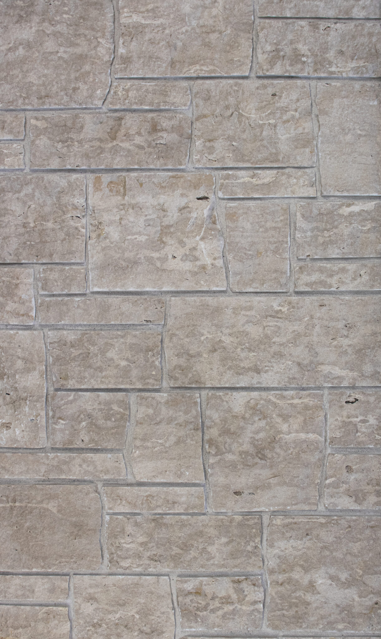 Fond du Lac Castle Rock has a rough and varied texture with a cool and consistent color range. The stone will range from light grays to occasional dark grays, buffs, and whites. Split to rough squares and rectangles range in heights from 4″ to 12″, with lengths from 6″ to 42″ for full veneer and 6″ to 24″ for thin veneer stone.
