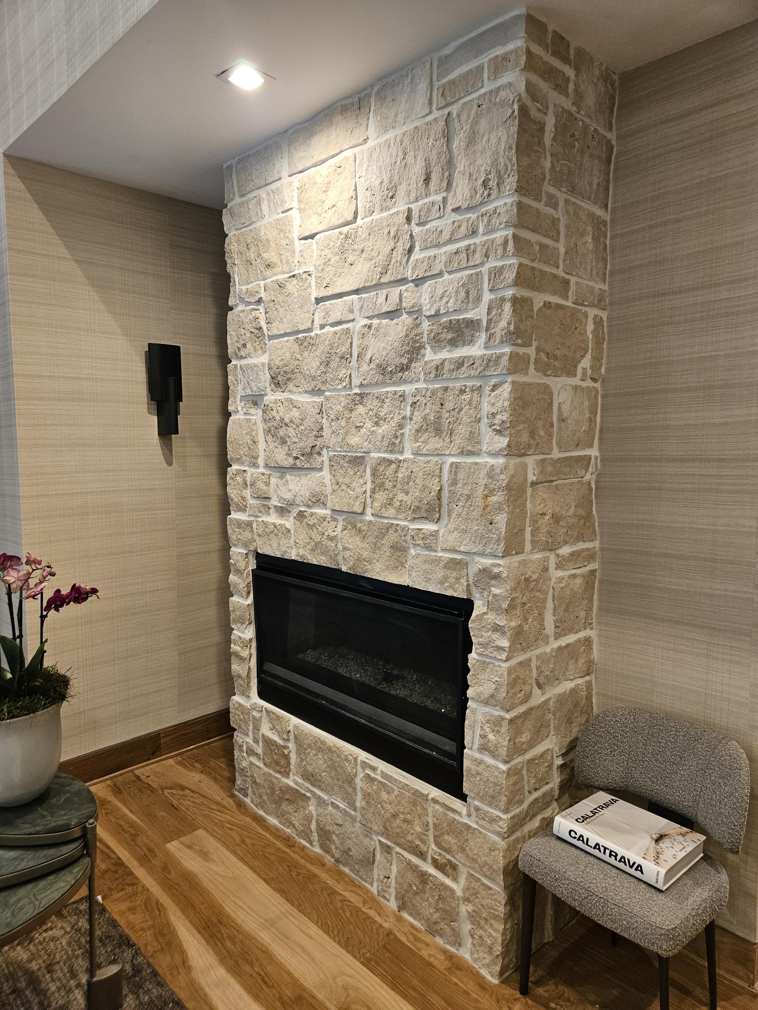 Ivory Sand Tailored Blend carries the organic character of mottled limestone—earthy yet refined, evoking images of windswept dunes in a rippled desert. Its warm neutral undertones of cream and beige are softened by hints of taupe and accented with the sparkle of occasional geodes. Each piece is sawn to heights of 2-1/4″, 5″, 7-3/4″, and 10-1/2″ with sawn random lengths from 6″ to 42″ for full veneer and 6″ to 24″ for thin veneer stone.