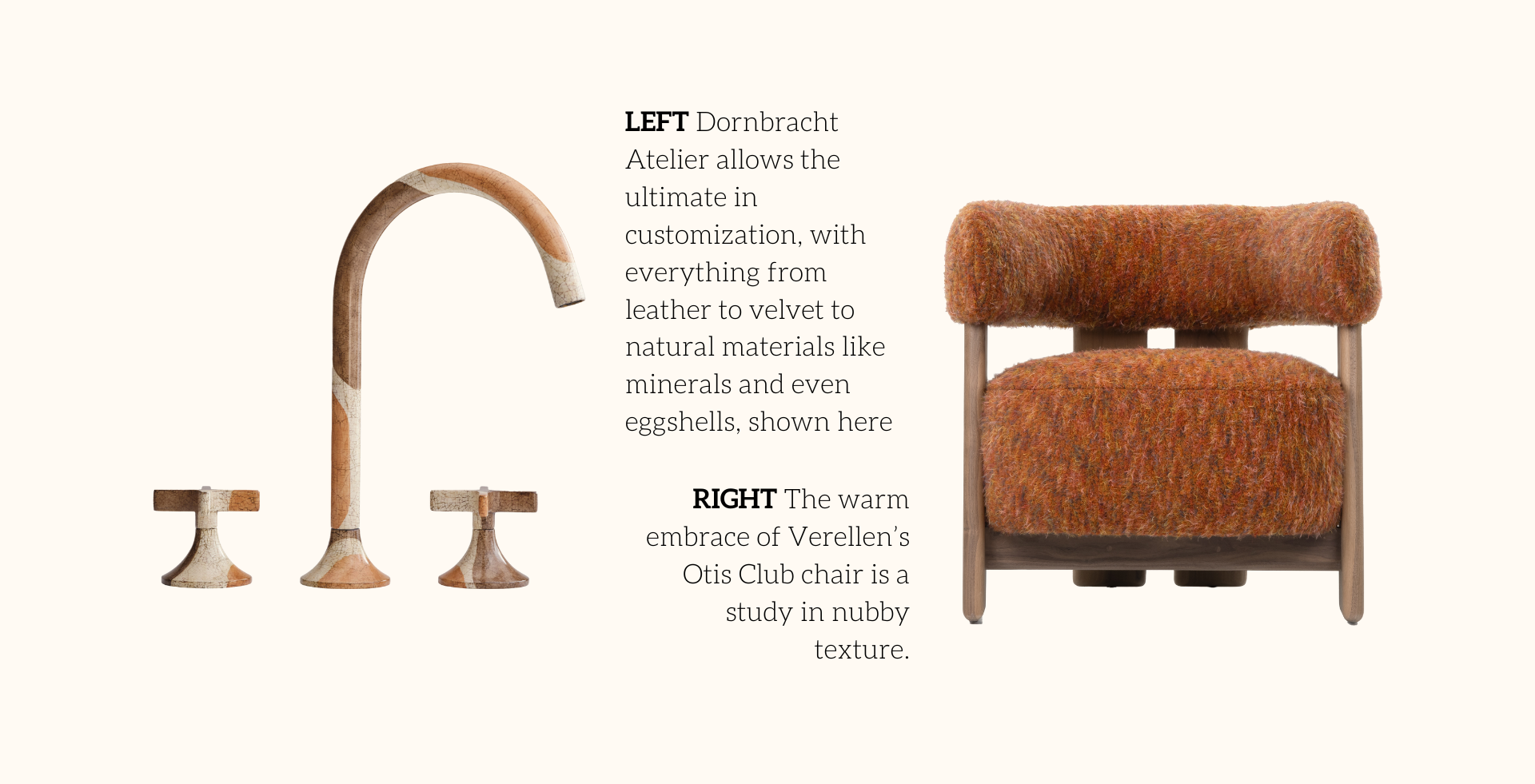 Bomma’s Fragments lighting collection could pass for solid polished stone, though it is composed of breakable glass. Fixtures from Dornbracht Atelier may appear carved from the walls of Canyonlands, but are actually encased in what was once delicate eggshell. A chair from Verellen combines a powerful pattern with a shape that offers a soft embrace. Canyonlands colors also run the gamut: translating into Alkemis paint colors from the earthy Hair of the Dog to the ephemeral Nothing but Flowers. And, of course, the ultimate way to bring such beauty into your home is with stone. Buechel Stone’s Chilton Rustic captures all the canyon colors—including rich reds and yellows, but also cooler notes of charcoal. Meanwhile, Ginger Sands Castle Rock stays more in the neutrals zone—while still offering variations from beige to blush. Natural stone’s innate combination of strength and malleability makes it a material that can be beautifully incorporated with a wide swathe of styles.