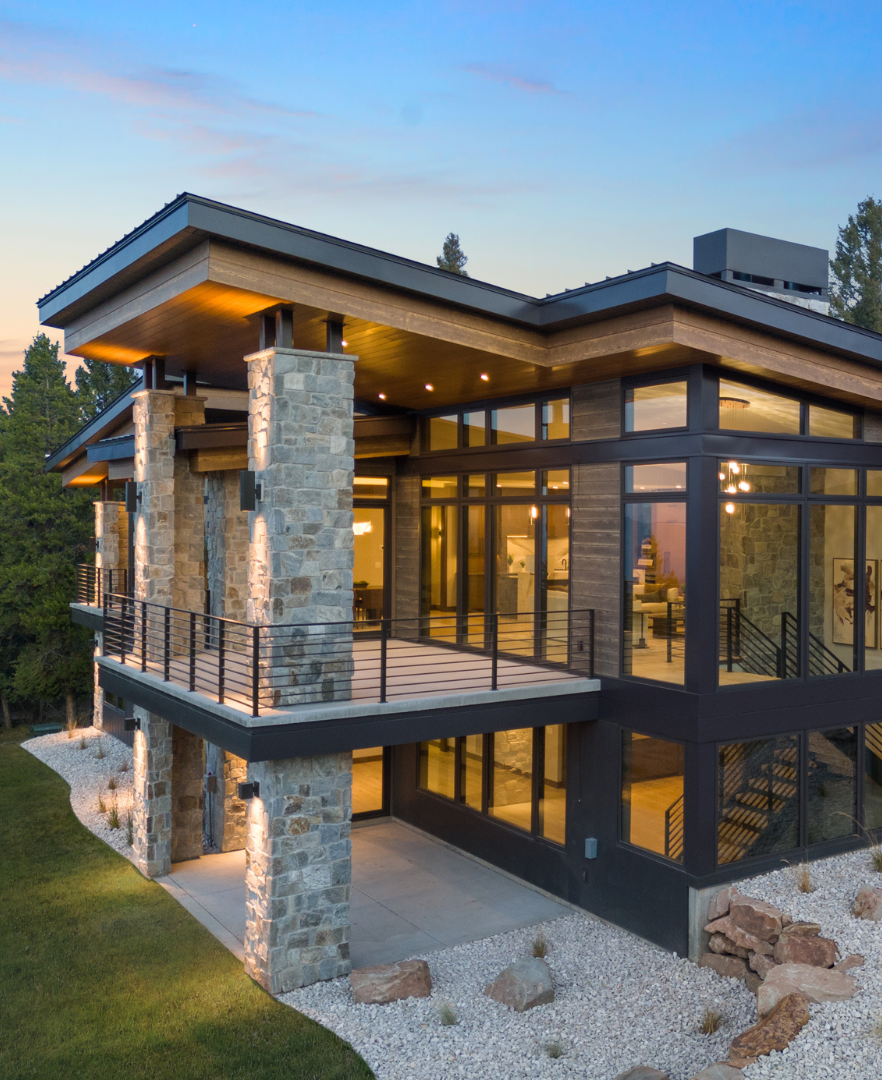 Contemporary architecture can bring to mind cold, soulless design. But that’s not how Mike Hartman and Julie Speer—CEO and Design Director of Hartman Homes, respectively—see it. “The clean-lined modern mountain style can be cozy when you use materials such as stone in organic colors and warm woods,” Speer explains.